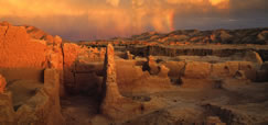 由于当地气候极为干燥,城址又远离水源,无法开垦种植,因而城内的官署衙门、寺院佛塔、坊曲街道等建筑物遗址得以完好 地保存下来。如今游人至此,仍可以走街串巷,穿堂入室。像这样历史悠久、保存完整的古城遗址,在国内可以说是首屈一指的。 |