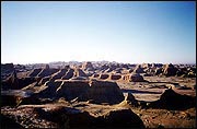 奇台"魔鬼城"南据奇台县城约110公里,总面积84平方公里,该城实为雅丹地貌成因,物理风化、