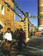 随着人群,我来到马路对面的大巴扎,以黄色为主调的墙,以及各种休闲服饰专卖店。这毕竟是一个现代化都市的大巴扎,不再是赶着自家的牛羊,坐在露天吆喝的集市了。被称为新疆第一观光塔的圆柱形高塔伫立在广场中心,前后是露天舞台和餐饮广场。往前走走,发现大巴扎内的楼宇间四通八达,不过每一个入口处都有大巴扎的布局和你所在位置提示,“迷路”是不可能的。