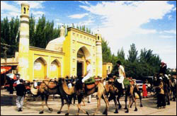 北京游客喜欢操着充满优越感的京腔大声评论事物,充份显现了他们的可爱,很多北京人即使穿着阿迪,耐克,艾可,但还是喜欢象穿“板鞋”一样,把脚蹭在地上走,那里有了他们,那里就热烈起来。他们大声评论着对清真寺及伊斯兰教的看法,惹得几个正礼拜的维吾尔老人都不知发生了事情,抬头观看。