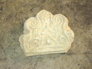 在苏阿苏沟实地采访结束后,沈建国又将我带到他的“建国奇石馆”,拿出一个“宝贝”。这是一个古代建筑材料,专业术语称为“云图”,类似瓦当。沈建国意味深长地说了一句:“古人称‘有云就有龙’,这‘云图’一般百姓家是用不起的。”