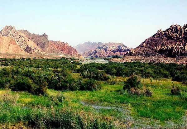 库车河谷是一处风光独特的沿河地带。从天山融化的雪水,沿着山谷自上而下,时而溪流淙淙,时而凌空飞下,切割出道道峡谷,令所经之处显露生机。河谷里尽是奇形怪状的石林与石壁。库车河两岸的“赤壁”有的似钟乳矗立,有的如土林高耸;有的似长剑直刺蓝天,有的似浮雕色彩斑斓。在斜阳照耀下,赤壁昏暗,但条块分明;夕阳西下,明月从山体后缓缓升起,余辉则将山体映现得一片辉煌,奇幻无比。戈壁尽头地平线上就是山峦雪峰,远看似一条白色的飘带浮在天际,壮美瑰丽。