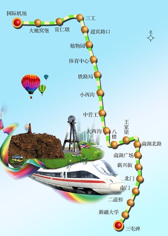 据悉,地铁1号线全长约27.6公里,全部为地下线。全线共设车站21座,平均站间距约1.3公里。从南至北依次是三屯碑、新疆大学、二道桥、南门、北门、新兴街、南湖广场、南湖北路、王家梁、八楼、大西沟、中营工、小西沟、铁路局、体育中心、植物园、迎宾路口、三工、宣仁墩、大地窝堡、国际机场。