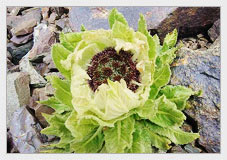 雪莲是新疆的著名特产。早在清代,赵学敏著的<<本草纲目拾遗>>艺术中就有"大寒之地积雪,春夏不散,雪间有草,类荷花独茎,婷婷雪间可爱"和"其地有天山,冬夏积雪,雪中有莲,以天山峰顶者为第一"的记载。关于雪莲的形态和生境,贾树模一九三六年在<<新疆杂记>>中就有这样的描述:“ 雪莲为菊科草本。。。。。。生雪山深处,产拜城。哈密山中。” 雪莲,在医药上应用以有数百年的历史。汉族人民多视为治疗风湿关节炎之珍品;维吾尔。哈萨克族则当作妇科良药。 雪莲种类繁多,如水母雪莲。毛头雪莲。绵头雪莲。西藏雪莲等。 新疆雪莲,在<<本草纲目拾遗>>的记载中被视为正品。以天池一带的博格达峰所产者,质量最佳,并且有神秘色彩。过去高山牧民在行路途中遇到雪莲时,被认为有吉祥如意的征兆,并以圣洁之物相待。据传,这雪中之莲花,是瑶池王母到天池洗澡时由仙女们撒下来的,对面海拔五千多米的雪峰则是一面漂亮的镜子。雪莲被视为神物。饮过苞叶上的露珠水滴,则认为可以驱邪除病,延年益寿。 雪莲种子在零摄氏度发芽,三到五摄氏度生长,幼苗能经受零下二十一摄氏度的严寒。在生长期不到两个月的环境里,高度却能超过其他植物的五到七倍,它虽然要五年才能开花,但实际生长天数只有八个月。这在生物学上也是相当独特的。 雪莲形态娇艳,这也许是风云多变的复杂气候的结晶吧!它根黑。叶绿,苞白。花红,恰似神话中红盔素铠。绿甲皂靴。手持利剑的白娘子,屹立于冰峰悬崖。狂风暴雪之处,构成一幅雪涌金山寺的绝妙画图。 |