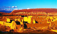 在著名的吐鲁番火焰山下,有两片古墓地,哈拉和卓和阿斯塔那古墓区,古墓总数近千座,大部分是古代高昌国时期的墓葬。 古高昌国建于公元5世纪中叶,其都城即是火焰山下的高昌古城。在高昌国先后称王的有闵氏、张氏、马氏、麴氏,其中麴氏称王时间最长,传记10代,历时140余年,直到公元640年唐朝统一高昌地区设西州时,高昌国才亡。使人感到奇怪的是,在这两片墓区中,当年高昌国宫延中的王亲国戚大墓均有发现,但迄今却未发现一座高王的陵墓。寻找高昌王陵墓仍然是新疆考古工作中一个有待解决的课题。 | | |