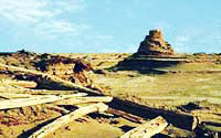 我国西汉时期,罗布泊地区有一个楼兰国,它的城郭――楼兰城,曾是丝绸道上商业经济兴旺的一座重要的交通枢纽城市。但是这样一座在公元前后活跃了几个世纪的城市,到公元4世纪后竟然完全消失于历史记载,沦于荒漠中。在沙漠深处,还有一片方圆20平方千米的古城遗址,紧邻于干涸的尼雅河床。据说考古工作者发现它时,覆沙已经退去,露出真迹:街巷整齐、屋宇完好,树木环绕的涝坝痕迹清晰可见。屋内陈设物,有各种农用工具,甚至储粮的瓮、罐内还盛着籽实。曾见过它的欧洲探险家们惊呼:好像一场突然降临得灾难,使人们还来不及搬运和逃生,便被湮没了。然而考古工作者在现场并未发现有人的遗骨。向这类沦入沙漠深处的古城遗址,还有不少。造成他们大批被遗弃荒废的原因,一直令人费解。科学工作者对此进行了多学科的综合考察研究,先后提出了沙漠南侵说,异族入侵说、丝路改道说、土地盐碱化说、河流改道说和气候变迁说等见解,但究竟是何原因,还有待探讨。 | | |