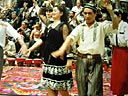 经过几轮的舞蹈之后,便开始了娱乐活动。娱乐活动的内容也十分丰富,主要有“敬茶”、“对诗”、“夺腰带”“判官司”“抡鞭子”等游戏、如在“抢鞭子”的游戏中,一对青年男女上场对舞,在舞中男的试图夺下女的手中的鞭子,而女的则可以用鞭子抽打男子头部以外部位,打的越重,被认为是有情,如果只是轻轻打几下或是鞭子轻而易举地被男的夺走,说明女的对男的无意。这种游戏也是青年男女表达爱情的一种方式,每种游戏都十分有趣,受到人们的欢迎。