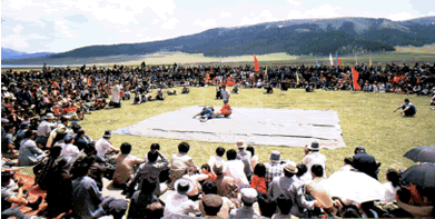 那达慕大会是内蒙、甘肃、青海、新疆的蒙古族人民一年一度的传统节日,在每年七、八月这一水草丰茂、牲畜肥壮、秋高气爽的黄金季节举行。