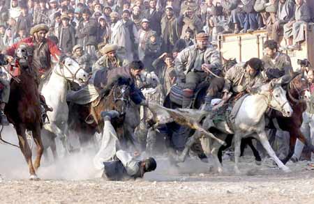 叼羊是一场力量和智慧的比赛,也是马上技巧功夫的大比拼。比赛开始时,主持者把割掉了头的一只山羊掷在赛场中,一声令下,两组骑手立即跃马扬鞭冲将过去。最先到达的人俯身拾起羊,把羊压在大腿下策马奔驰。对方的人马拼命追赶争夺,同组的人则冲挤抵挡住,同时像抛篮球般传来传去;稍一不慎就被对方夺去,夺得者挟羊飞奔,对手们又策马狂追;如此争斗的难分难解,直到一位强手终于冲出重围摆脱对手,把羊掷落在指定的地点,才算胜出。