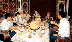 每年伊斯兰教历九月,称为斋月。封斋的天数有时为二十九天,有时为三十天。斋日期间,穆斯林们在日出之前都要吃好封斋饭。日出之后的整个白天,无论怎样饥饿,不准吃一点东西、喝一口水,平时抽烟折人也要暂时戒烟,谓之封斋(或把斋)。此外,还要求穆斯林在斋月期间禁房事,克制一切私欲,断绝一切邪念,以示笃信真主安拉。小孩和老弱者可以不封斋,妇女在经期中也可以不封斋,但要节制饮食,绝不能在公开场所吃喝。有病、赶路的人可以不封斋,但日后要补斋,不能补的以交纳财物作为罚赎。到了晚上,当封斋将要结束时分,清真寺开斋的钟声当当响起,情况就与封斋时完全不同,人们可以饮食说笑,左邻右舍可以团聚一桌,甚至行路的陌生人感到饥饿时,随便走到素不相识的人家,都会受到主人的热情招待。