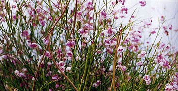 罗布麻又称夹竹桃麻、野麻、茶叶花,属夹竹桃科,为多年生野生植物。新疆的罗布麻生长在罗布泊一带,花儿红白相映,叶展翠绿,根深叶茂。罗布麻是纺织、造纸的重要原料。我国民间很早就有泡罗麻叶当茶饮以清火祛热的习惯。近年来的研究证明,罗布麻所含的多种成份有清火、隆压、强心、利尿功能,可治心脏病、高血压、神经衰弱、肝炎腹胀、肾炎浮肿等。