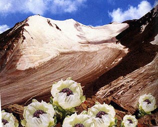 雪莲形态娇艳,这也许是风云多变的复杂气候的结晶吧!它根黑.叶绿,苞白.花红,恰似神话中红盔素铠.绿甲皂靴.手持利剑的白娘子,屹立于冰峰悬崖.狂风暴雪之处,构成一幅雪涌金山寺的绝妙画图.