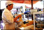 拌面是手工拉出的面再配以炒菜而吃的一种面食,因其价廉实惠而受欢迎。在维吾尔族及回族中,有一些熟练的拉面师傅,一次可拉一两公斤面,供10人以上食用。这种面被称为“把子面”,粗细匀称,软硬适度,吃起来特别滑溜可口。如果再加上用羊肉片和辣子炒出的菜,即所谓的“过油肉拌面”,就更是本地人和游客十分喜爱而又常常食用的美味佳肴了。