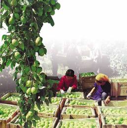 库尔勒香梨,至今已有两千年的栽培历史。公元前五世纪的《西京杂记》中说:“瀚海梨,出瀚海北,耐寒而不枯。”历代被作为贡品由帝王诸侯所享用,《西游记》中,猪八戒偷吃的人参果,传说就是库尔勒香梨。库尔勒香梨具有香气浓郁,皮薄肉细,酥脆爽口,汁多渣少,色泽鲜艳的特点,不但具有营养价值,而且可以药用。主要因为它性寒味甘,具有“润肺、凉心、消疾、解毒疮、驱毒、切片贴烫火伤止痛不烂”的功效。库尔勒香梨曾多次在国内获奖,在国际市场上被誉为“中华蜜梨”、“梨中珍品“、”果中王子“。梨花盛开季节,数万亩梨花竞相开放,朵朵雪白的梨花绽满枝头,好象瑞雪悄然而至。每到这一季节, 总有远足踏青的人们驻足园中,或走访梨家农舍,体验浓郁的梨乡风情。