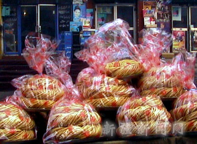 油馓子是信仰伊斯兰教少数民族的的风味名点之一。在古尔邦节和肉孜节,家家户户的餐桌上,都有一盘黄澄澄的多层的圆柱形的油馓子。