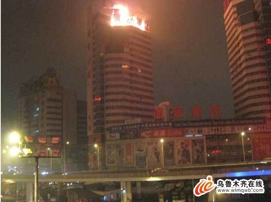 21日23时13分左右,位于乌鲁木齐市钱塘江路27号商贸城通嘉集团(国贸大厦)B座顶层一处搭建的办公室发生火灾,过火面积约200平方米。火灾发生时,距离现场数公里外都可见到高层商厦顶楼的火苗与浓烟。