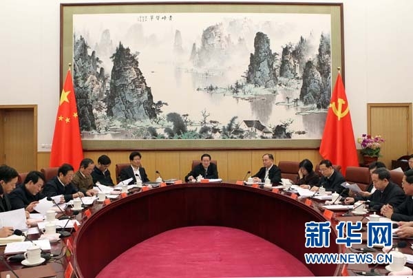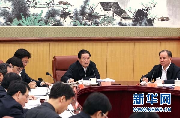 3月25日,中共中央政治局常委、中央政法委书记周永康在北京主持召开中央有关部门和新疆负责人会议,研究“十二五”时期对口支援新疆工作规划。新华社记者丁林摄