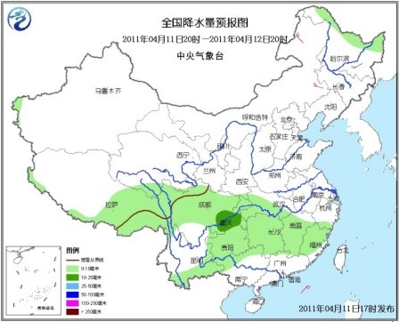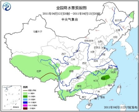 11日夜间~14日,新疆西南部山区、青藏高原东部和南部、川西高原北部、内蒙古东北部、黑龙江大部等地将有小到中雪或雨夹雪;新疆沿天山西部、西藏东南部、西南地区大部、湖北大部、安徽南部、江南大部、广西北部等地将有小雨或阵雨,其中重庆南部、湖南中部、江西中北部和浙赣交界等地的局地有中雨。内蒙古大部、东北等地有4~6级风。
