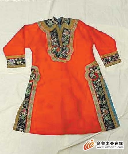 近代维吾尔族红缎绣花长袍