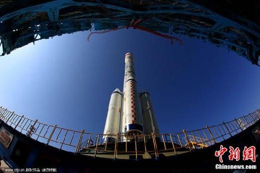 9月20日9时,甘肃酒泉卫星发射中心,天宫一号目标飞行器、长征二F运载火箭组合体开始转运。海晗 摄 图片来源:CFP视觉中国