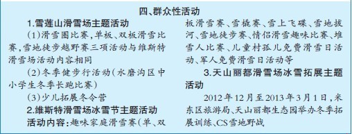 其余还有冰雪游园会、滑雪推广、冰雪体育活动、冰雪旅游考察推介等活动,具体见后附活动安排。