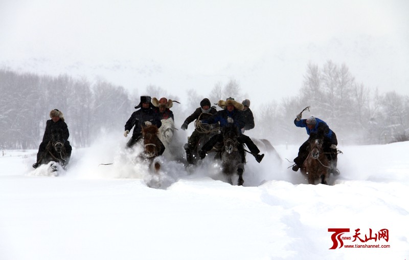 阿勒泰市雪地赛马。
