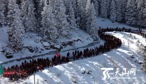 资料图片:春节期间市民在天池景区徒步 记者金浩摄
