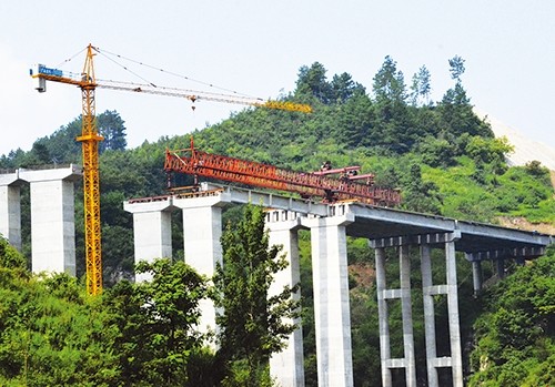 8月7日,独山至平塘高速公路旧寨大桥施工现场,施工人员正顶着火炎烈日在紧张施工,各种大型机械穿梭不停,整个施工现场一片火热繁忙的景象。