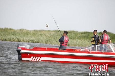 中新网阿勒泰8月16日电(王小军 庄晓颇)8月16日,首届新疆路亚船钓公开赛暨第三届福海乌伦古湖野鱼垂钓大赛在福海县举行。