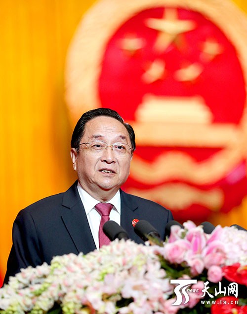 在热烈的掌声中,俞正声发表了热情洋溢的讲话。他首先代表中共中央、全国人大常委会、国务院、全国政协、中央军委,向新疆各族干部群众和各界人士,向人民解放军驻新疆部队指战员、武警新疆部队官兵和政法干警,向新疆生产建设兵团广大干部职工,向中央驻疆单位干部职工和全体援疆干部,表示热烈的祝贺和亲切的慰问;向所有关心和支持新疆发展进步的同志们、朋友们,表示衷心的感谢和崇高的敬意。