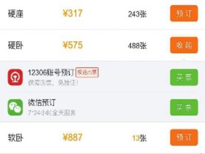 以微信购火车票为例,在微信的“钱包”菜单中选择“火车票机票”,即可查询各次列车的时刻、票价及余票情况。选择底下菜单栏中的“12306”,便可使用自己的12306官方网站的账号和密码进行登录,然后便可进行车票预订,预订显示有“12306账号预订”和“微信预订”两种买票方式。这两种方式选择坐席后,可以直接添加乘车人信息,乘车人需是12306账号中的常用联系人,完成后提交订单,付款后即成功购票。订票成功后,就可以去火车站,代售点或者自动取票机取票了,返回到个人中心还可以看到火车票的购买情况。