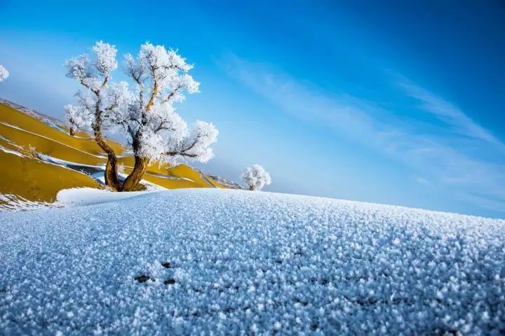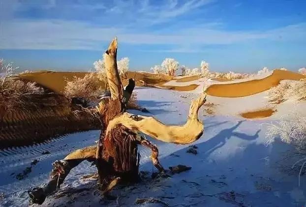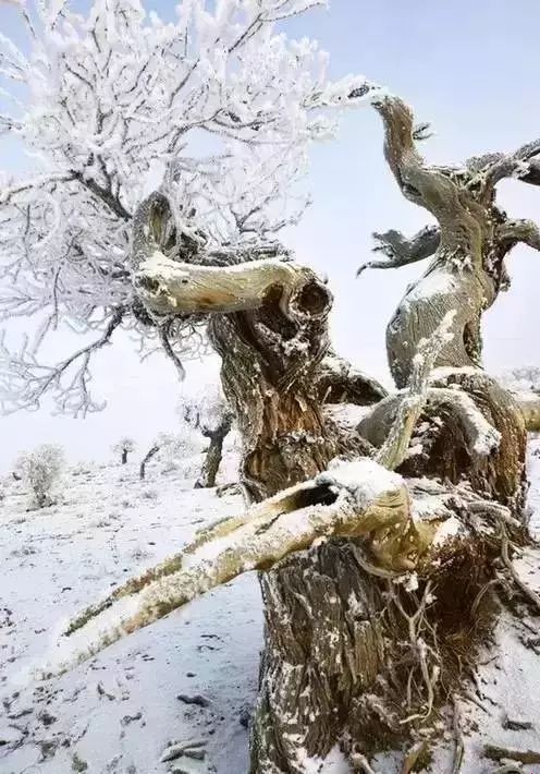 人都说“凌寒独自开”的梅花最为傲骨,但却鲜少有人赞扬寒霜中坚韧的冬日胡杨。