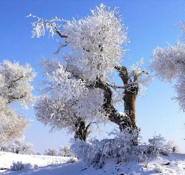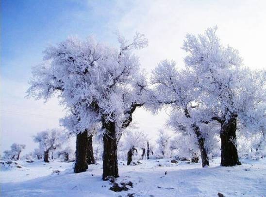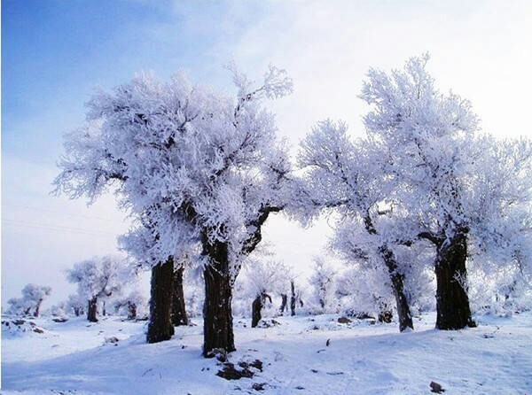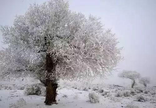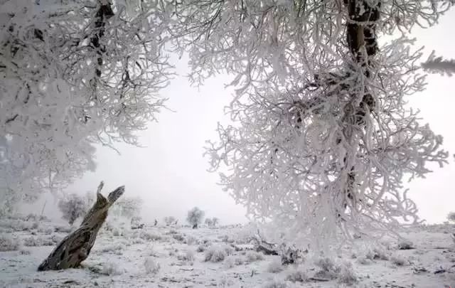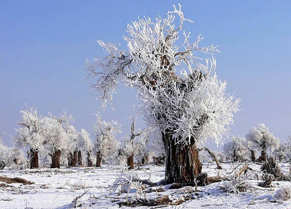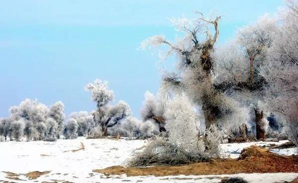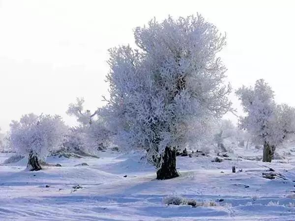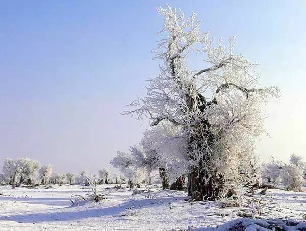 一夜暴雪,胡杨林银装素裹,好似千树万树梨花开。
