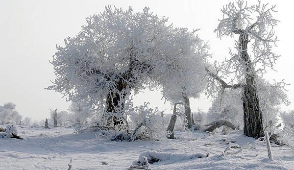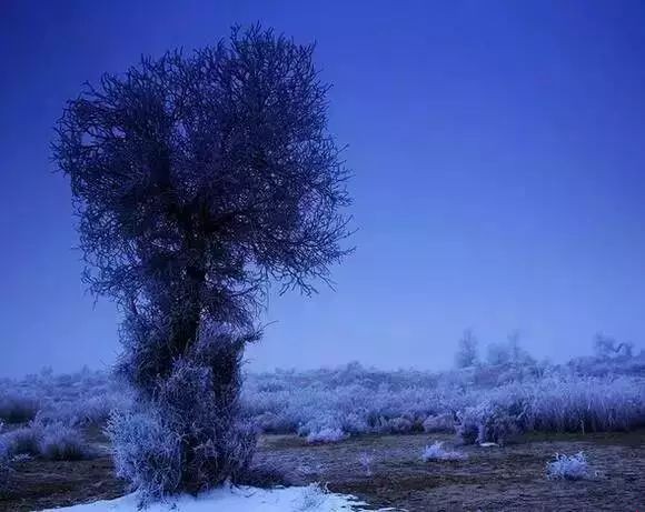 暂别了秋日的金色辉煌,也告别了熙熙攘攘的人群和长枪短炮,万籁俱寂的胡杨林犹如进入了一个白色的童话世界。