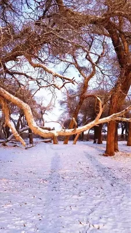 如果说秋天的胡杨林是一种绝美,那么冬天的胡杨林则更让人心醉。