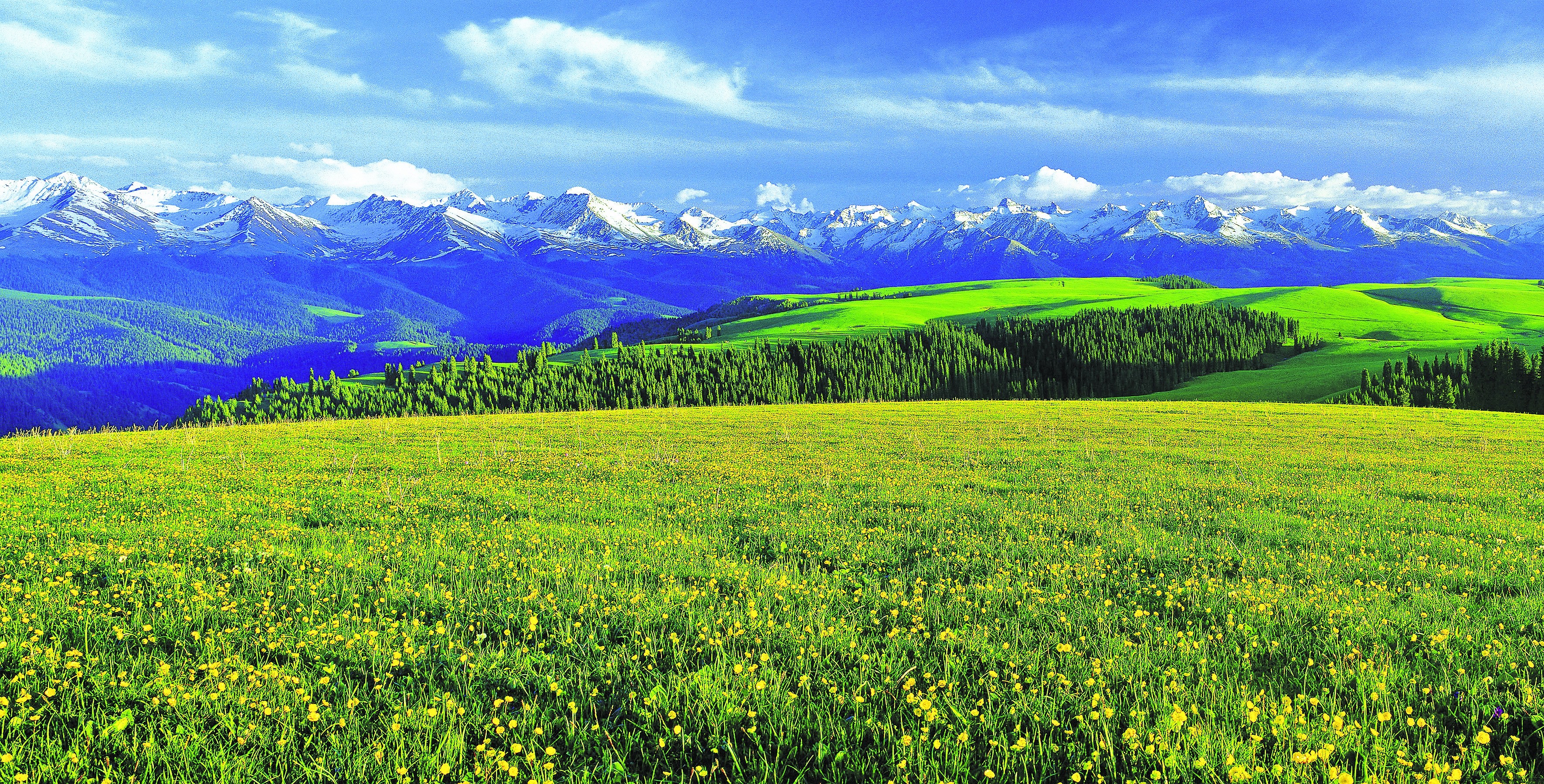 春风吹遍天山南北,也吹绿了高山、峡谷、绿洲。
