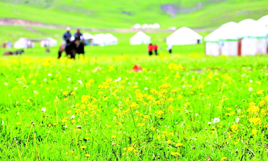 春天的伊犁大草原秀美如画(摄于2018年4月23日)。□本组图片均由新疆日报记者甄世新摄
