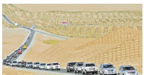 春天,自驾游车队穿越塔克拉玛干沙漠(摄于2018年5月13日)。 □确·胡热摄