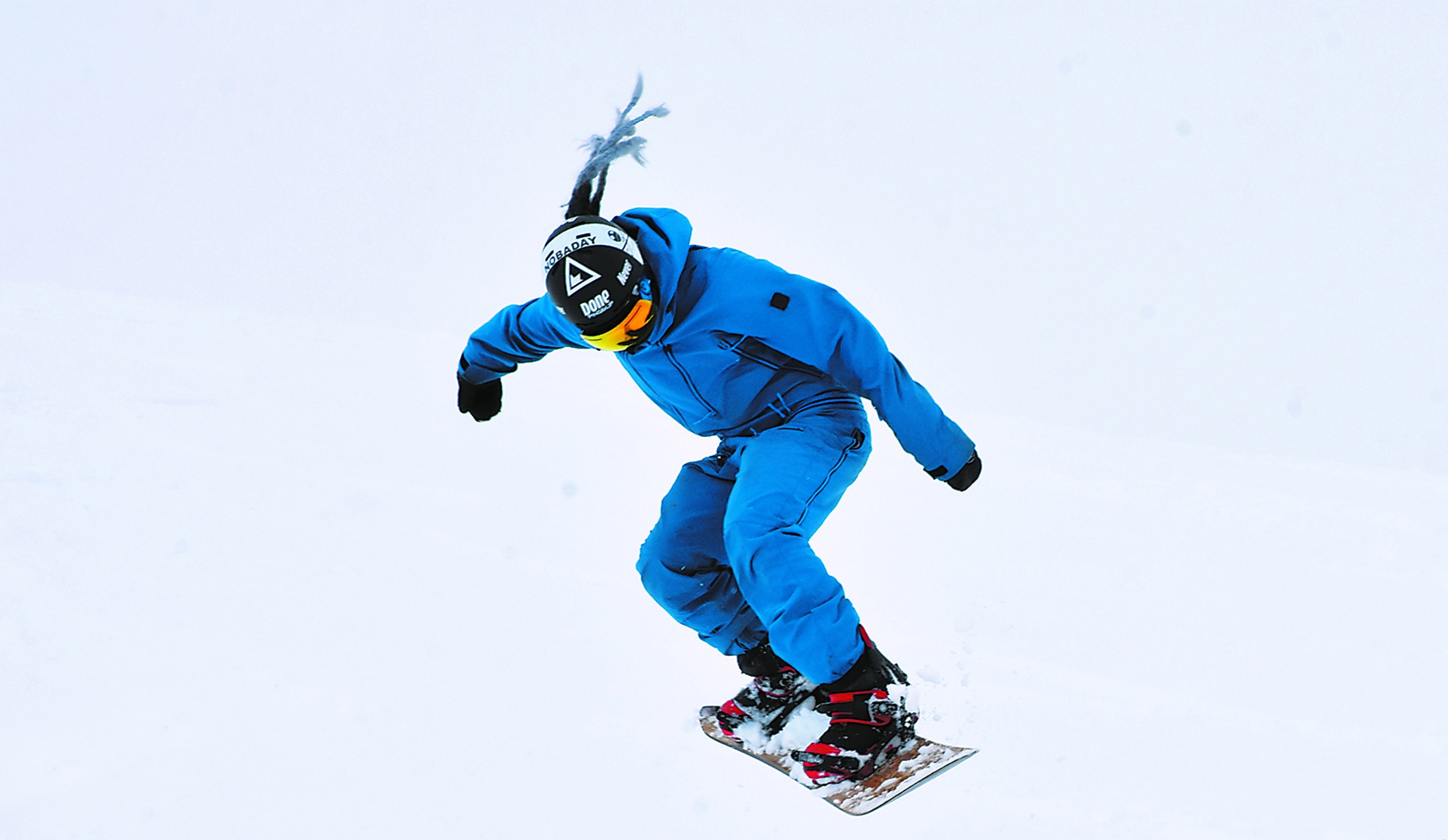 稍做准备后,他们乘坐压雪车和雪地摩托向着海拔3100米的雪峰飞驰而上,在那里滑一场落差1000多米的立夏粉雪。
