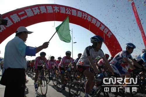 中广网博乐5月30日消息(记者胡志坚 王耀民 吴卓胜 罗成)新疆第二届环赛里木湖公路自行车赛今天在精河县首发,新疆博尔塔拉蒙古自治州捷安特追风车队26号运动员艾尼瓦尔·卡斯木骑行全程92公里后第一个冲过终点,赢得第一赛段个人排名第一。