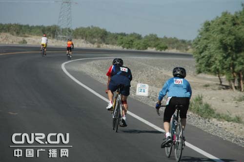 今天早上10点30分,随着新疆旅游局党组书记池重庆在环赛自行车赛首发仪式上的鸣枪,来自疆内外23支车队的118名运动员向第一赛段终点站博乐市进发。全程92公里的第一赛段从精河县出发,途径新疆生产建设兵团82团、90团、89团、86团,最后到达终点站博乐市。