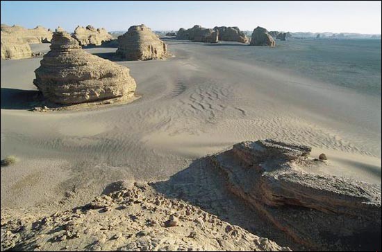 这一天可以参观楼兰古国土垠遗址,穿越龙城雅丹林,途中参观中国徒步探险家余纯顺遇难地和纪念碑、祭奠孤胆英雄。抵达罗布泊北岸雅丹龙城 楼兰古城地处塔里木盆地东缘的罗布泊凹地中,四周被沙漠、雅丹劣地和坚硬的盐壳所包围,人迹罕至,环境异常的荒凉、凶险。1980年5月我国著名科学家彭加木在罗布泊蒙难失踪,更给这座古城蒙上一层神秘可怖的面纱。近年上海的“独行侠”余纯顺历时8年在走遍了大半个中国后,倒毙罗布泊荒漠,又给楼兰古城平添了几分凄凉和悲壮。楼兰古城究竟是怎样消失的?楼兰遗址究竟在哪里?楼兰的自然环境究竟有多恶劣?楼兰有些什么文化遗存?长期以来一直是中外考古学家和科学家关注的问题。楼兰也是中外探险爱好者憧憬向往的神秘之地。 据史书记载,早在公元前2世纪楼兰就是西域最繁华的地区之一,古楼兰国有人口14000余,士兵近3000,真可谓是一泱泱大国。古楼兰地处丝绸之路要冲,扼东西交通的门户,是汉王朝进入西域的桥头堡。当年在这条交通线上是“使者相望于道”,交通繁忙,城市经济繁荣,楼兰古城有着极盛一时的历史和灿烂的绿洲文化。奇怪的是,声名显赫的楼兰王国在繁荣兴旺了五六百年以后,却史不记载,传不列名,突然销声匿迹了。7世纪时,唐玄戕取经归来,看到楼兰国“城廊岿然,人烟断绝”,其萧条之景,使人顿生沧海桑田之感慨!1900年3月斯文。赫定率队考察罗布泊,差些全军覆没,因而宣称这里是可怕的“死亡之海”!